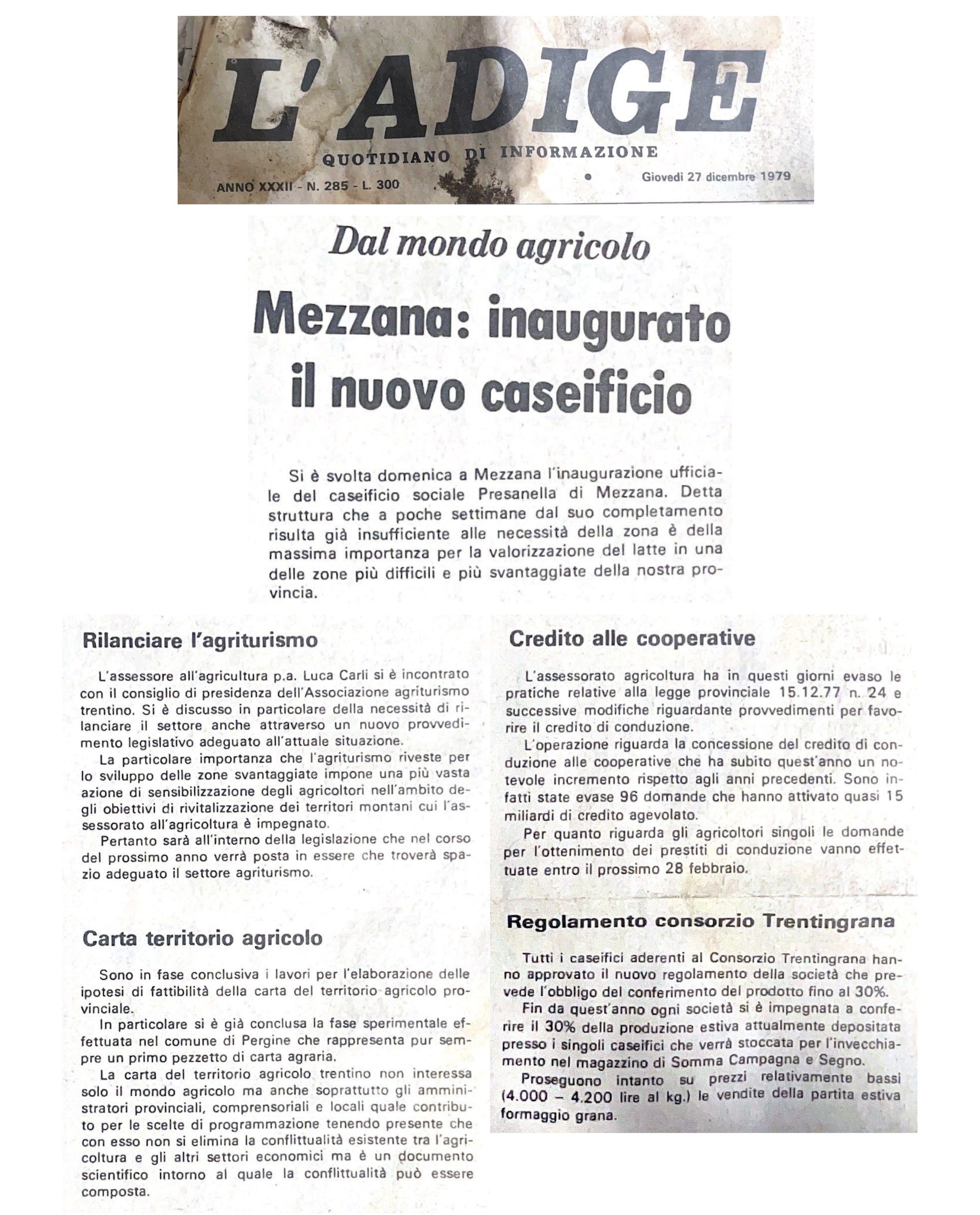 Dalla volontà e dalla lungimiranza di questi soci, nel 1979 venne costruito il Caseificio Presanella.